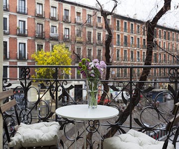 Cozy apartment, new and furnished with modern furniture, in a quiet street, behind the Plaza Mayor and just around the corner from Puerta del Sol and Plaza Santa Ana. Living room with 2 balconies, air conditioning and 42 "HD TV, 2 bedrooms, one with balcony and the other to the courtyard, new fully equipped kitchen with washing machine.