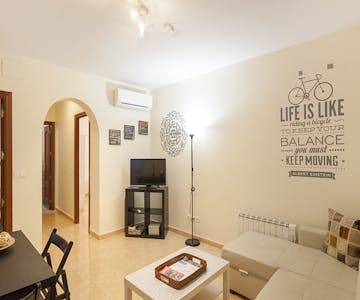 Cozy apartment, new and furnished with modern furniture, in a quiet street behind the Plaza Mayor and just around the corner from Puerta del Sol and Plaza Santa Ana. Living room with air conditioning and 42 "HDTV, bright bedroom with air conditioning, new fully equipped kitchen with washing machine.