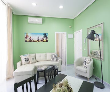 Cozy and bright south-facing apartment, new and furnished with modern furniture, in a quiet street behind Plaza Mayor and just around the corner from Puerta del Sol and Plaza Santa Ana. Sunny living room with air conditioning, 42 "HDTV and balcony, bright bedroom with air conditioning and balcony, new fully equipped kitchen with washing machine.